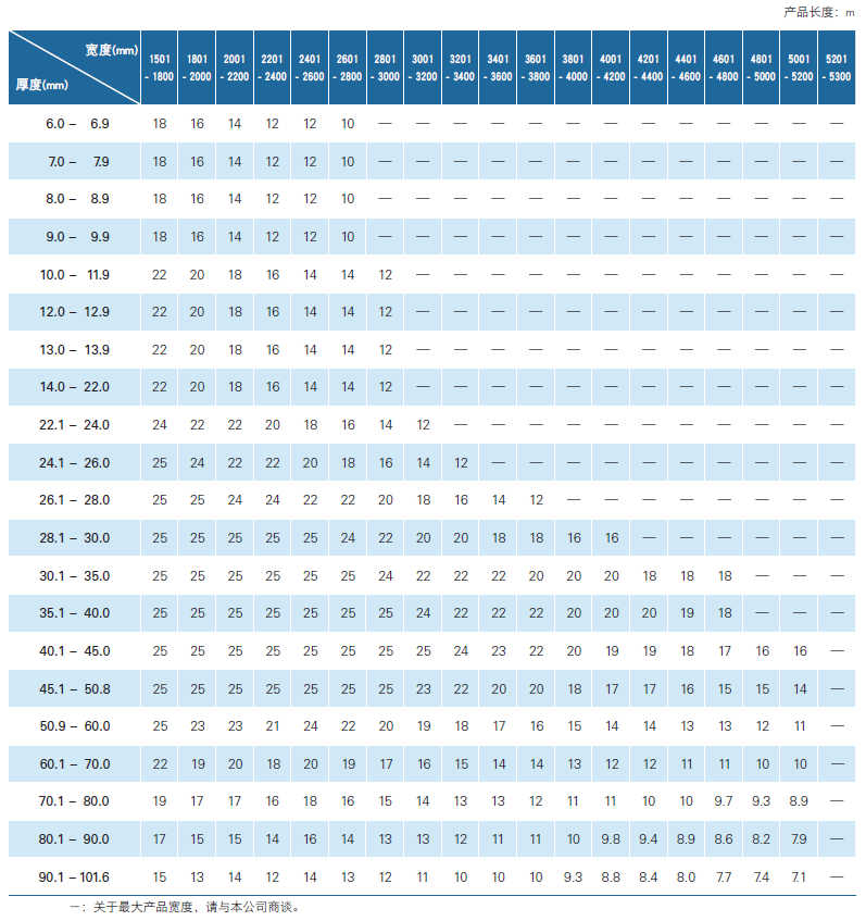 JFE耐磨鋼板可制造的尺寸